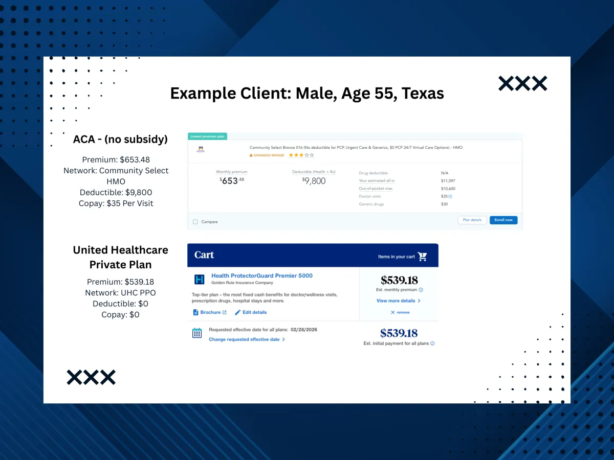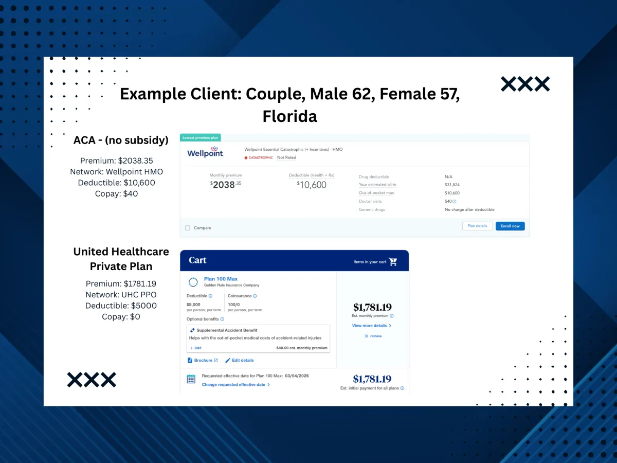Bottom line: the “best” path depends on your goals and situation. That’s why we help you quickly identify whether ACA or private makes the most sense for you.
